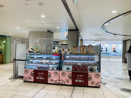 催事スペースでは定番商品の「あんみつ」をはじめ、季節限定の「夏みかんあんみつ」なども販売しております。