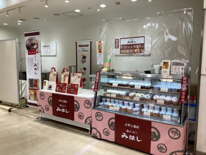 催事スペースでは定番商品の「あんみつ」をはじめ、冬季限定の「あわぜんざい」や