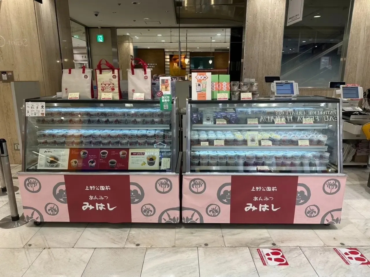 催事スペースでは定番商品の「あんみつ」をはじめ、季節限定の「若桃あんみつ」も販売いたします。
