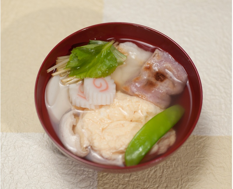 ほんのり桜風味の紅いお餅と白いお餅で見た目もおめでたいお正月限定のおぞうに。