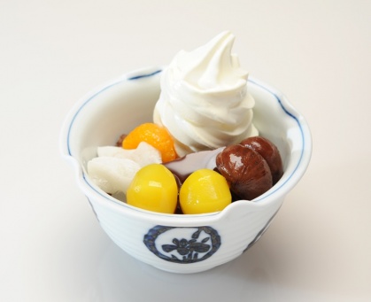 本日より秋の季節メニュー「栗あんみつ」「栗クリームあんみつ」お土産「栗あんみつ」の販売を開始いたします。