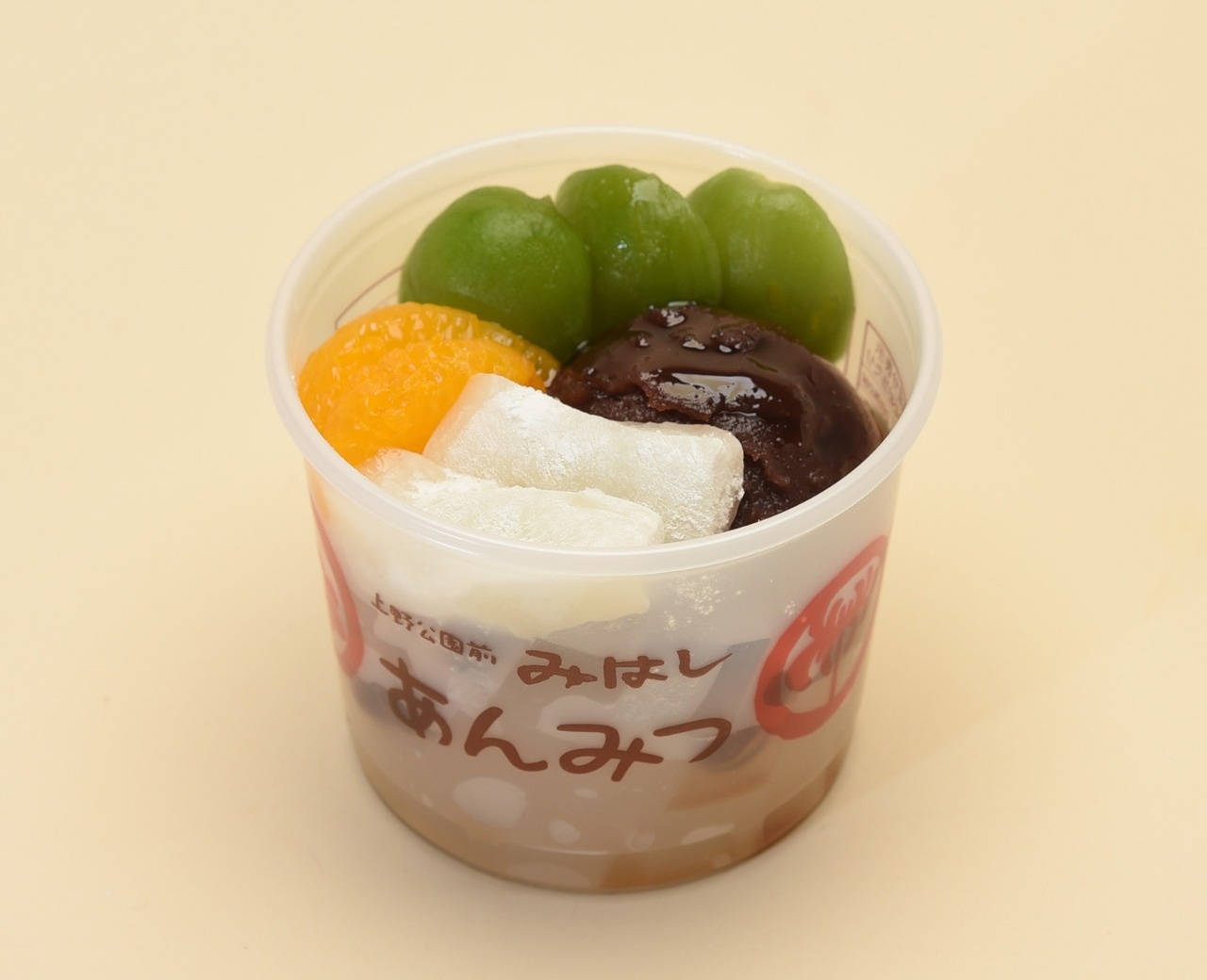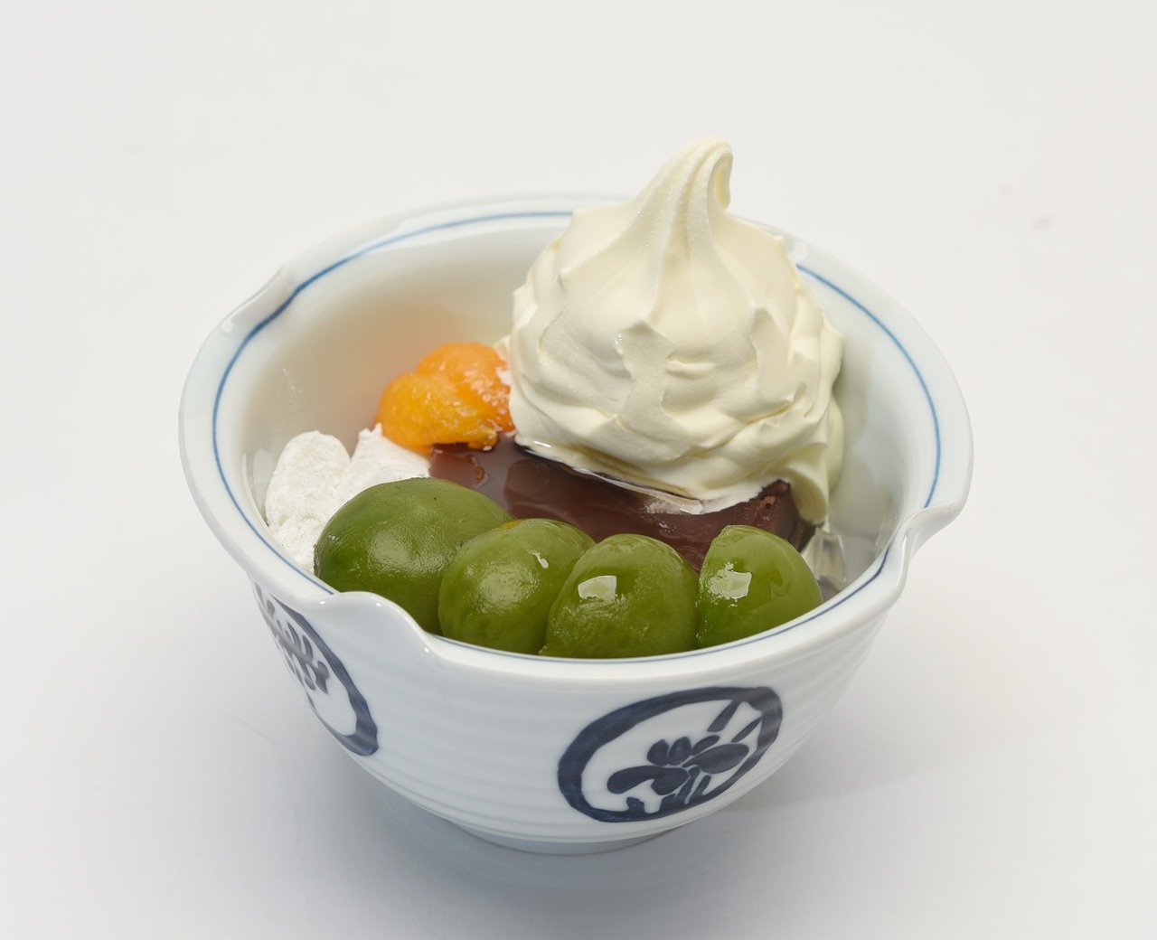 ソフトクリームをトッピングした「若桃クリームあんみつ」やお土産の「若桃あんみつ」もご用意しております。