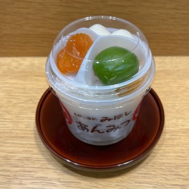 若桃・白玉・あんずの色合いが爽やかな店舗限定あんみつです。