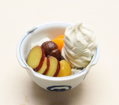 贅沢にのせたさつまいも、栗の甘みとソフトクリームが絶妙な味わいです。