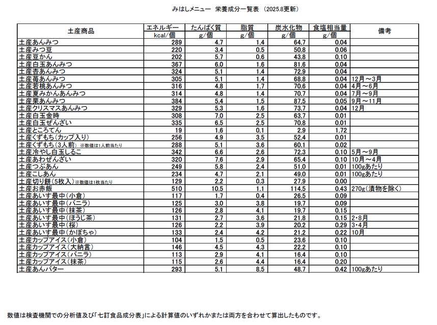 栄養成分一覧表PDFファイル